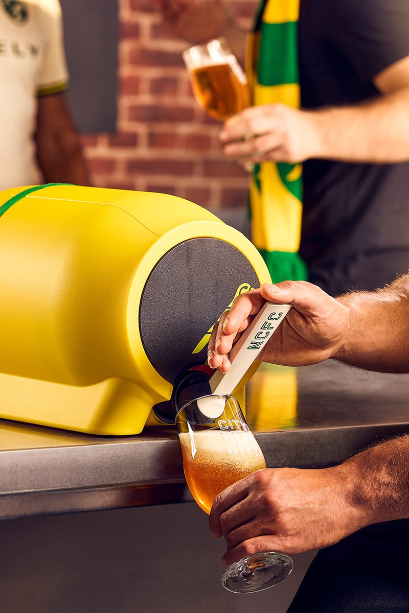 A bespoke NCFC yellow Pinter features branded detail on the tap handle, and club crest to the Front Plate. Fans can brew their own Canary Pilsner, this crisp, German-style lager is super refreshing and thirst-quenching.